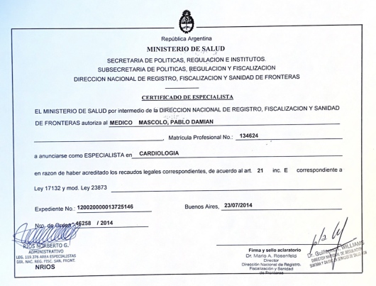 Si tiene alguna pregunta o desea programar una consulta, no dude en contactarme. Espero tener la oportunidad de trabajar juntos en su viaje hacia la salud y el bienestar cardiovascular. Atentamente. Dr. Pablo D. Mascolo